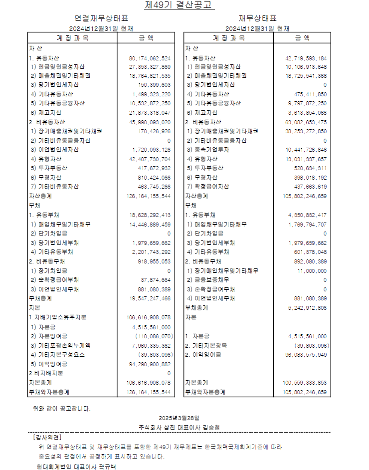제 49기 사업보고서 및 감사보고서 공고